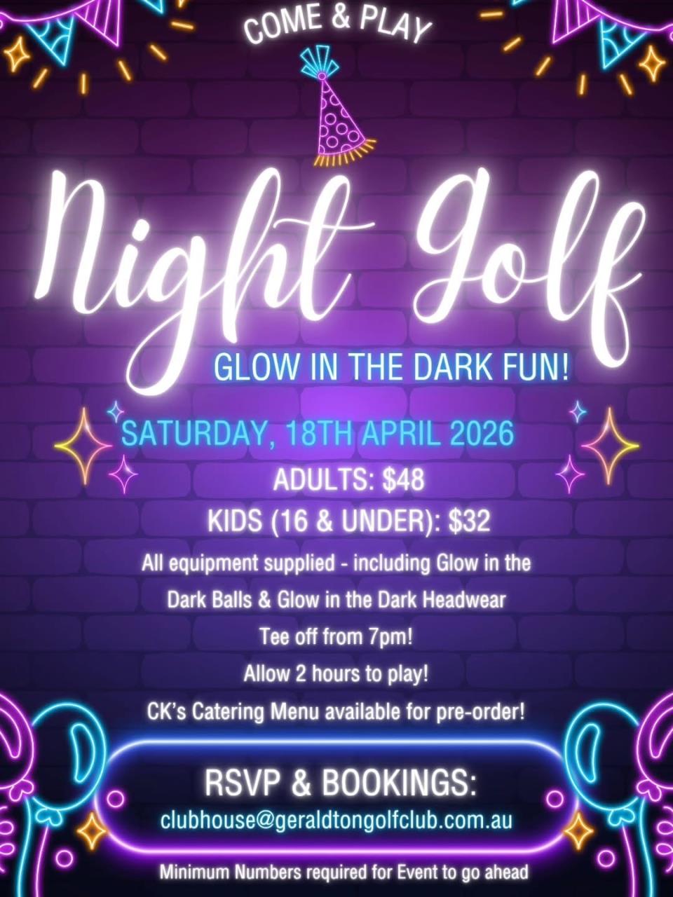 Looking for something fun to do? Why not join us for a GLOW in the DARK Night Golf session!